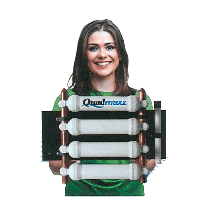 The Quadmaxx system is a compact, whole house system that provides 4 times the purification capacity of carbon filters of the same size, due to the unique 4-chamber purification tube design and 3D matrix discs.